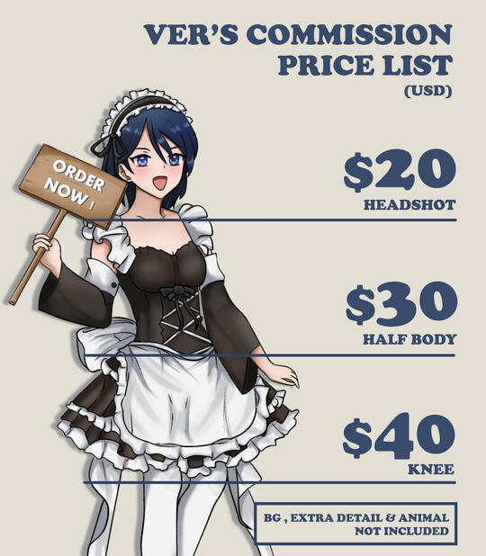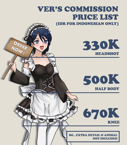 3. Extra Details like weapon,animal, textured clothes,etc: $5 -$15 (IDR 75k-200k) (depend of hard)